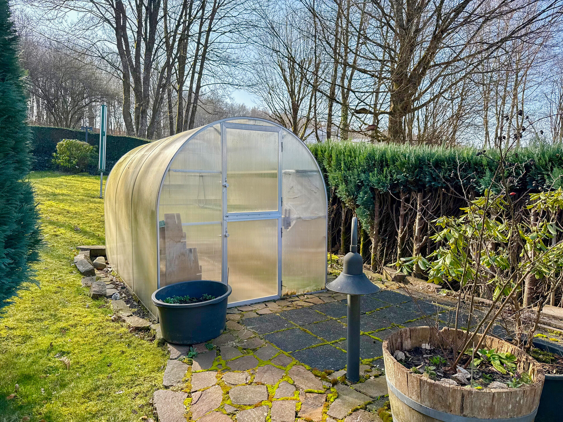 Terrasse mit Markise, überdachter Balkon, Gewächshaus