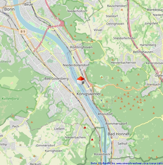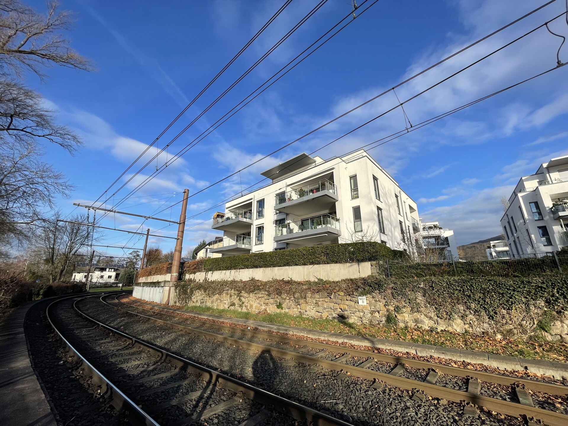 Die Umgebung ist geprägt von anspruchsvoller Architektur, hochwertigen Wohnanlagen und exklusiven Wohnstraßen. Einkaufsmöglichkeiten, Restaurants und Cafés sind bequem erreichbar, ohne die ruhige, naturnahe Atmosphäre zu beeinträchtigen. Zudem liegt die Wohnung in unmittelbarer Nähe zum Siebengebirge, das zu Wanderungen, Radtouren und Freizeitaktivitäten in der Natur einlädt. Die Kombination aus Rheinlage, urbaner Anbindung und naturnahem Umfeld macht die Adresse besonders attraktiv.