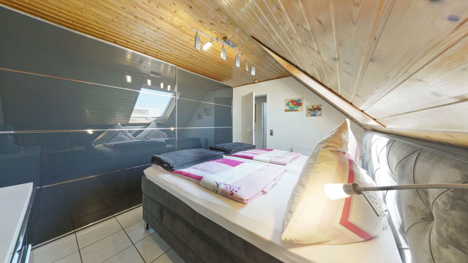 Ein besonderes Highlight ist das Schlafzimmer: Ein großes Dachflächenfenster sorgt hier nicht nur für eine lichtdurchflutete Kulisse am Tag, sondern bietet Ihnen nachts den Luxus eines freien Blicks in den Sternenhimmel. Ein weiteres, flexibel nutzbares Zimmer eignet sich ideal als inspirierendes Home-Office oder gemütliches Kinderzimmer. Das gepflegte Tageslichtbad ist zeitlos hell gefliest und verfügt über eine moderne Dusche, die den funktionalen Komfort perfekt abrundet.