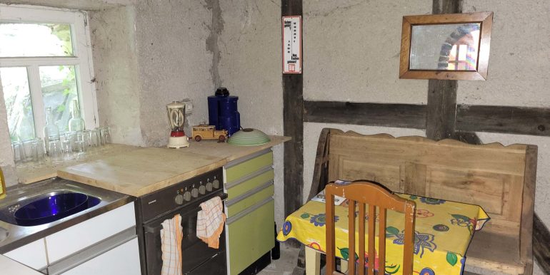Die solide Bauweise und das sichtbare Fachwerk im Inneren verleihen dem Haus eine besondere Ausstrahlung. Die Raumaufteilung bietet viel kreativen Spielraum – hier können Sie Ihre Ideen und Vorstellungen voll entfalten. Die Raumhöhen von ca. 1,90 m bis ca. 2,20 m unterstreichen den urigen Charakter des Hauses und schaffen eine gemütliche Wohnatmosphäre.
