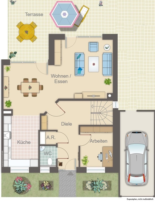 – nach Süd-Westen angelegte Terrasse