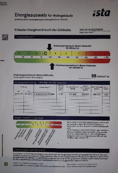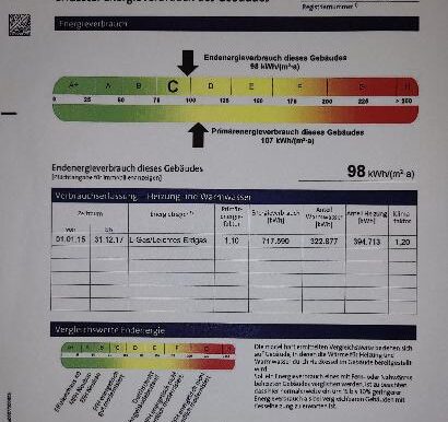 Endenergieverbrauch Wärme: 98 kWh/(m²a) inklusive Warmwasser