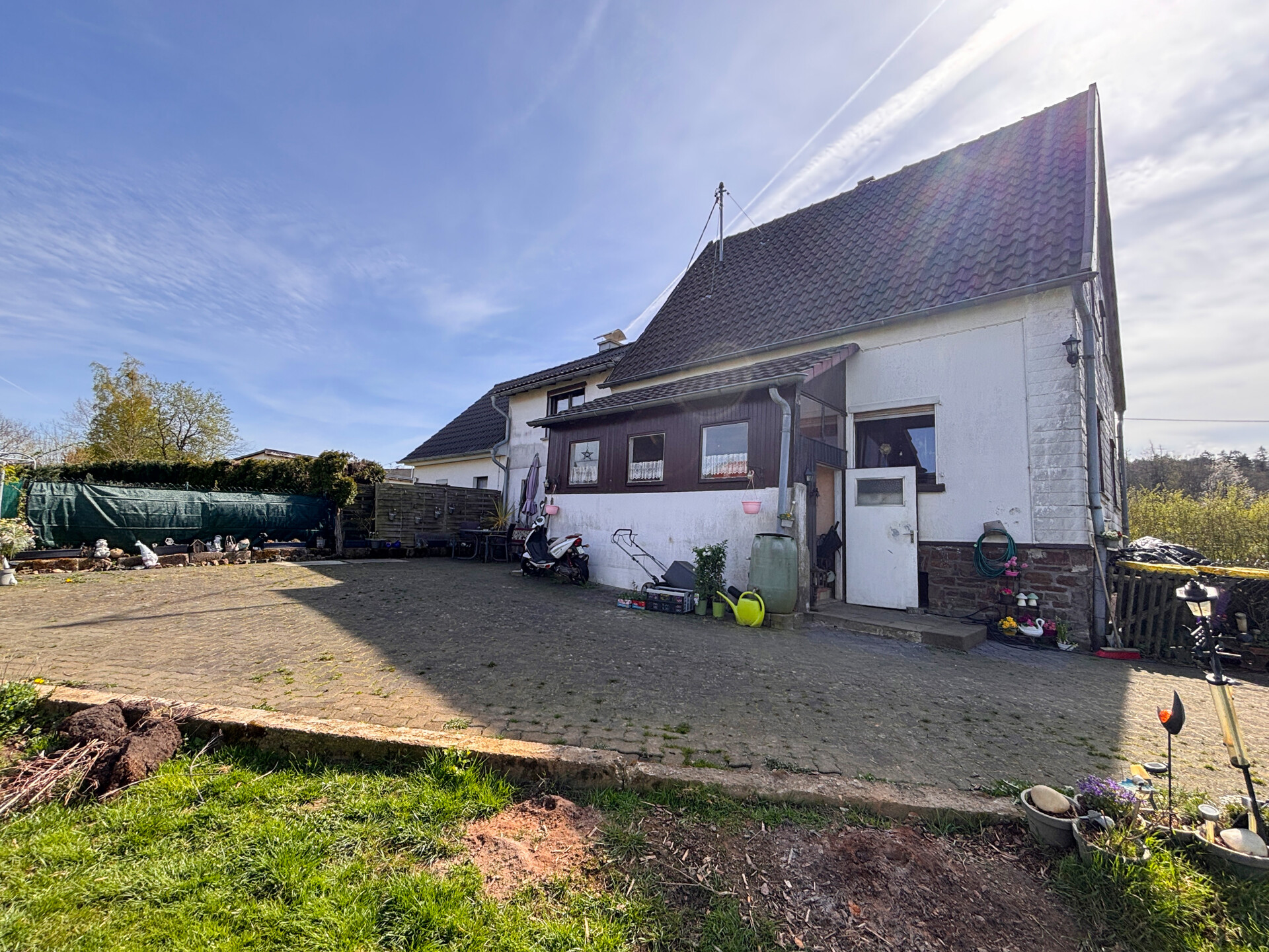 Dieses renovierungsbedürftige Einfamilienhaus bietet eine hervorragende Basis, um den Traum vom eigenen, gemütlichen Zuhause zu verwirklichen. Errichtet wurde die Immobilie etwa im Jahr 1938 auf einem ca. 600 m² großen Grundstück. Die Wohnfläche von rund 111 m² erstreckt sich über das Erdgeschoss und das Dachgeschoss. Im Erdgeschoss befinden sich ein Wohnzimmer, eine Küche sowie zwei Badezimmer. Ein Schlafzimmer ist im praktischen Zwischengeschoss untergebracht. Das Dachgeschoss verfügt über zwei Kinderzimmer sowie ein Durchgangszimmer, das sich ideal als Arbeits-, Gäste- oder Ankleidezimmer nutzen lässt. Das Haus ist vollständig unterkellert und bietet somit zusätzlichen Stauraum und vielfältige Nutzungsmöglichkeiten. Eine Terrasse lädt in den warmen Monaten zum Verweilen im Freien ein, während der pflegeleichte Garten individuelle Gestaltungsideen zulässt. Stellplätze für Fahrzeuge sind in der Einfahrt vorhanden.