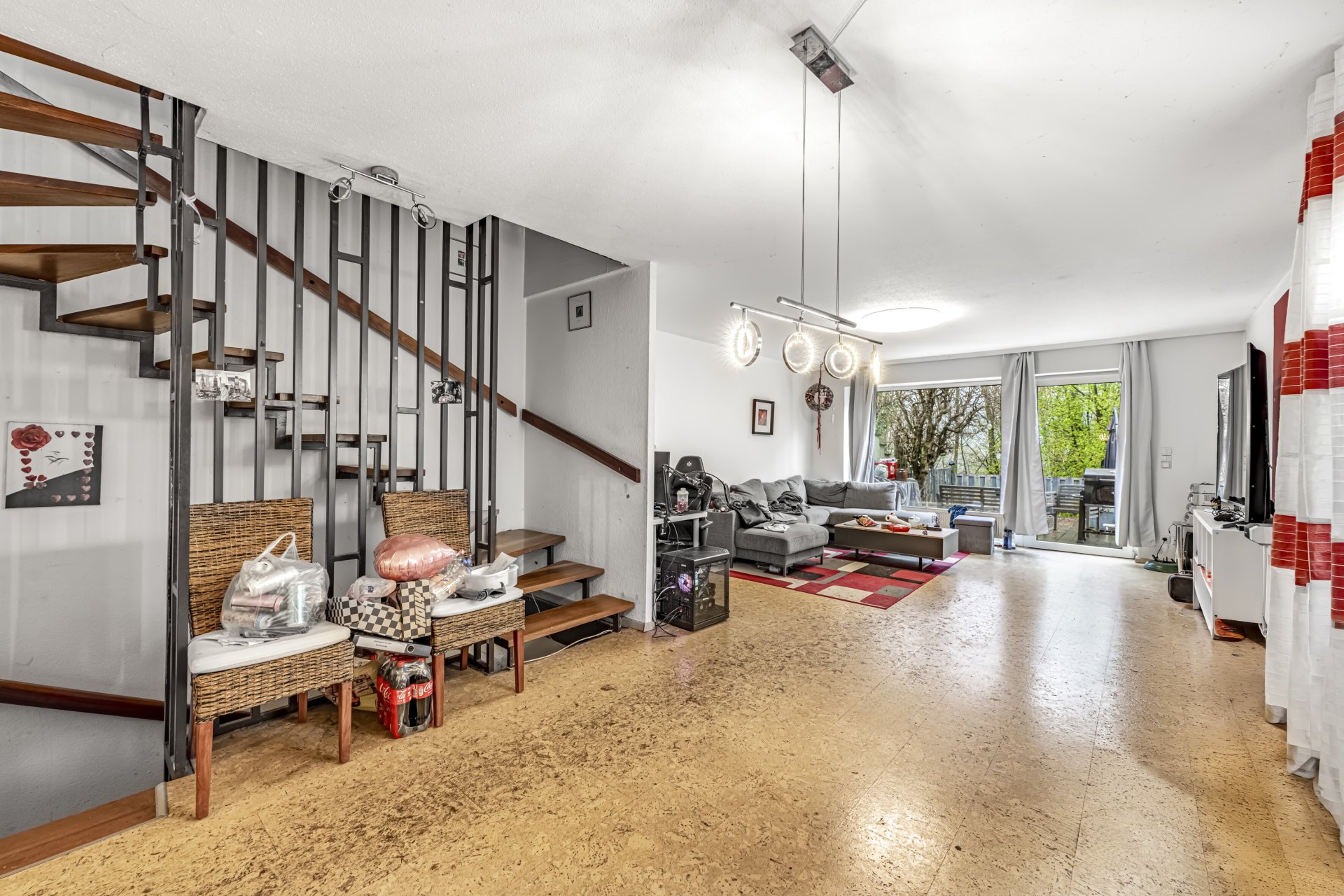 Im Erdgeschoss erreicht man nach dem Betreten des Hauses zunächst die Küche sowie ein kleines Gäste-WC mit Fenster. Das Herzstück ist der großzügige Wohn- und Essbereich mit direktem Zugang zur südöstlich ausgerichteten Terrasse. Diese bietet viel Platz um die Sonne und entspannte Grillabende zu genießen. Über eine offen gestaltete Treppe sind die übrigen Etagen zu erreichen.