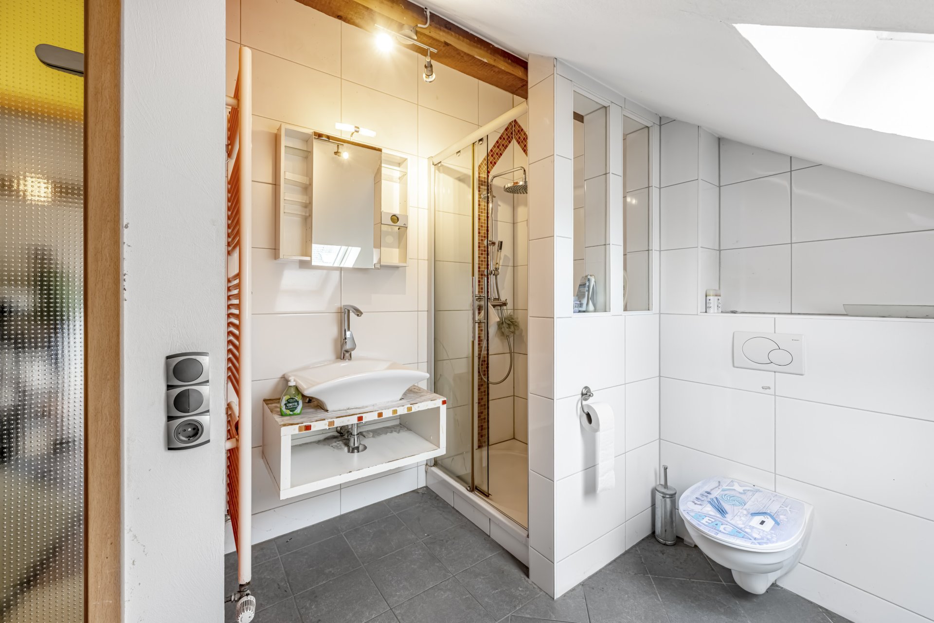 - Badausstattung: Dusche, Badewanne