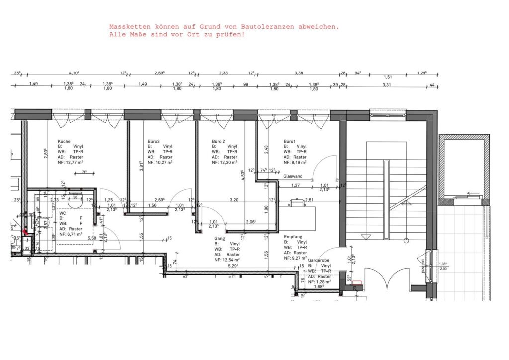 Aufgeteilt in 4 separate Büroräume, im einem der Räume ist/kann eine Küchenzeile untergebracht werden und zuzüglich bequem ein Besprechungstisch angeordnet werden. Empfangsbereich/Office, so werden Kunden gerne begrüßt. Separates, großzügig WC. Stellplätze können je nach Bedarf hinzugemietet werden, in beliebiger Anzahl verfügbar. Stellplätze direkt am Objekt.