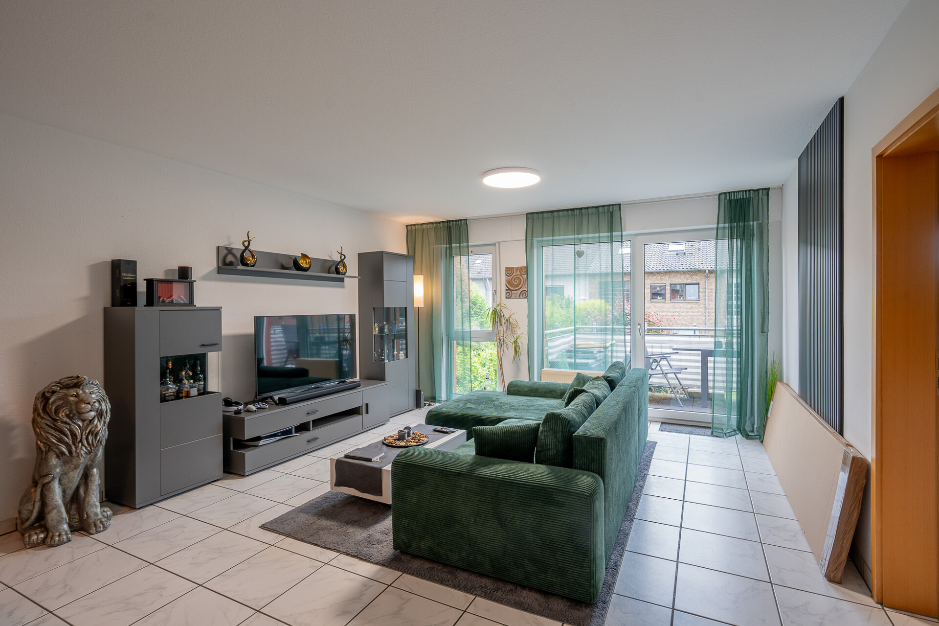 Der offene Wohn- und Essbereich ist ein wahres Herzstück: freundlich, lichtdurchflutet und mit direktem Zugang zum sonnigen Balkon, der an lauen Abenden zum Verweilen einlädt. Die angrenzende Küche bietet Raum für kulinarische Kreativität und gesellige Kochmomente.