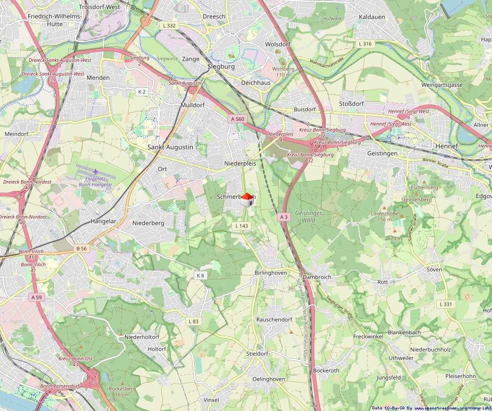 Die Wohnung befindet sich in ruhiger und naturnaher Lage im Sankt Augustiner Ortsteil Schmerbroich, der zum Stadtbezirk Niederpleis gehört. Niederpleis ist einer der größten Stadtteile von Sankt Augustin im Rhein-Sieg-Kreis in Nordrhein-Westfalen und bietet eine sehr gute Infrastruktur sowie eine angenehme Wohnqualität.