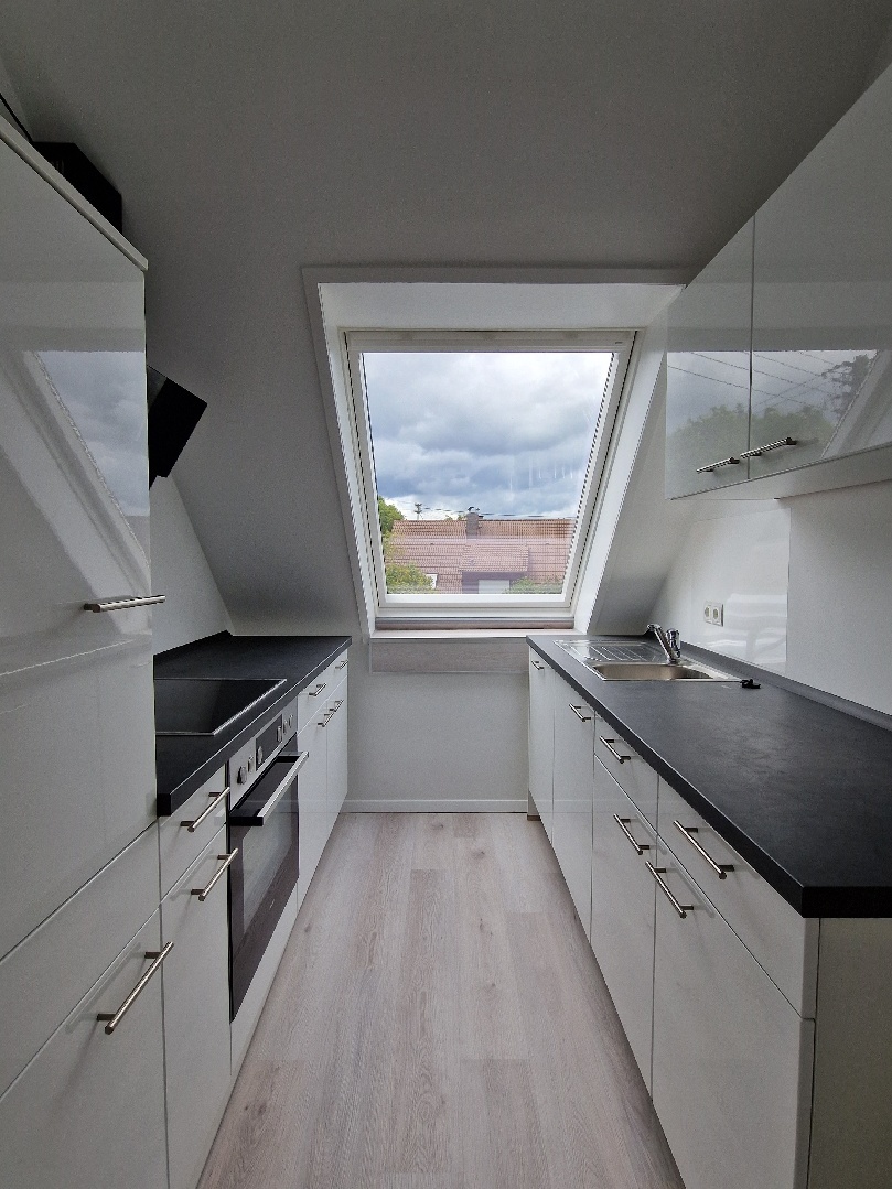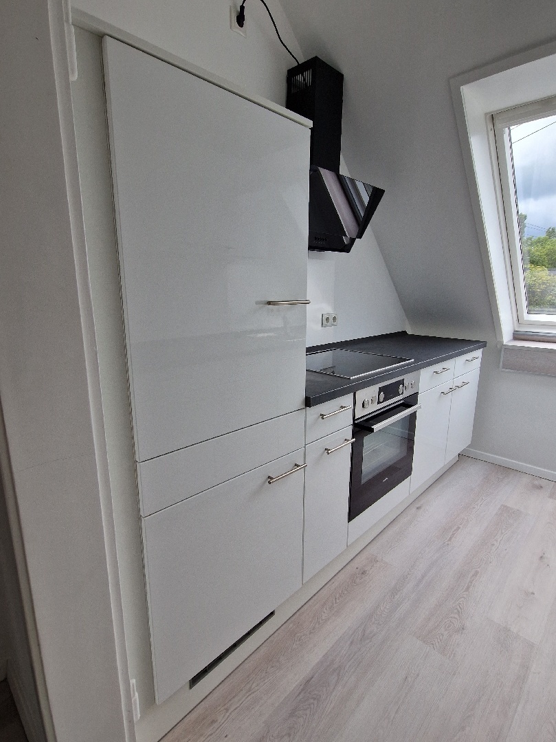 Über die zentrale Diele erreichen Sie alle Räume der Wohnung. Direkt nach Betreten befindet sich auf der rechten Seite das helle Tageslichtbad, das mit einer großzügigen Dusche sowie einem Anschluss für die Waschmaschine ausgestattet ist. Ein Platz für einen Trockner steht Ihnen zusätzlich im Keller zur Verfügung. Angrenzend befindet sich die Küche, die bereits mit einer Einbauküche ausgestattet ist.
