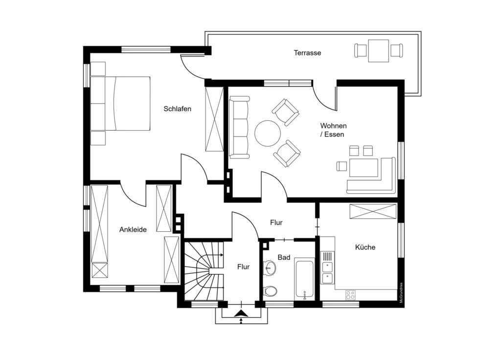 – Terrasse angrenzend an das Gartengeschoss mit Zugang zum Garten