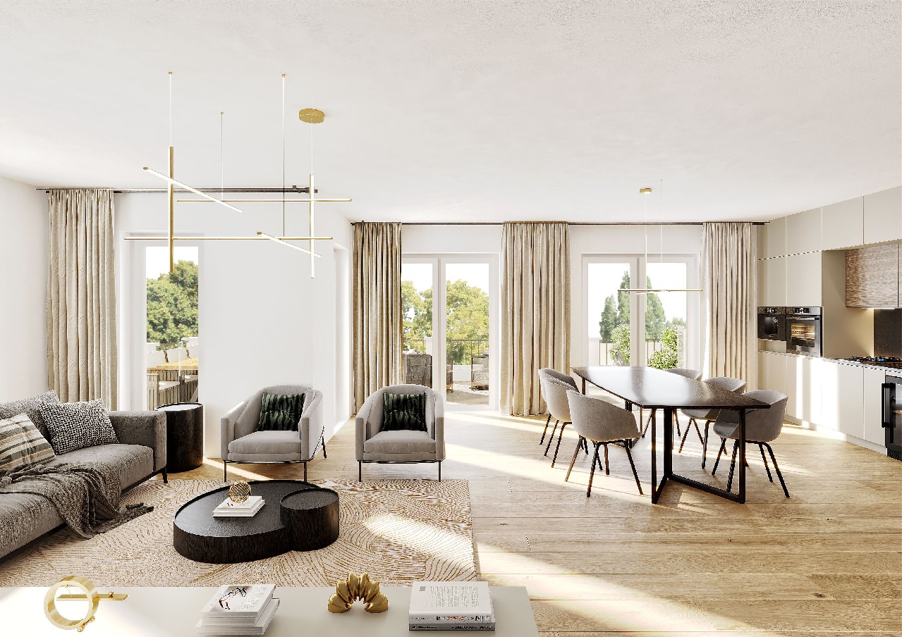 Alle in den Zeichnungen und Fotos dargestellten Einrichtungsgegenstände sind lediglich Möblierungsvorschläge und nicht im Kaufpreis enthalten. Sonstige Einbauten, Gewerke, Gebühren, Honorare oder sonstige Leistungen sind im Kaufpreis nur insoweit enthalten, wie sie in der Baubeschreibung ausdrücklich erwähnt sind.