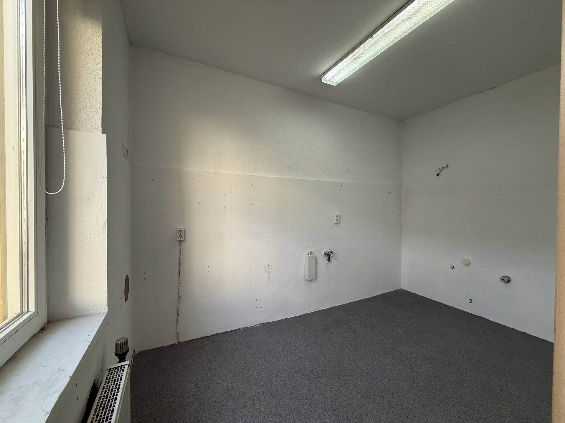 Im Erdgeschoss befindet sich zur Straßenseite hin ein ansprechendes Ladenlokal mit großer Schaufensterfront und einem angeschlossenen Büroraum ideal für Einzelhandel, Dienstleistung oder Büro. Im Flügelanbau liegt ein separater Lagerraum. Die ursprünglich offene Hoffläche wurde überbaut und wird aktuell ebenfalls als Lager genutzt; hier besteht eine Rückbauverpflichtung.