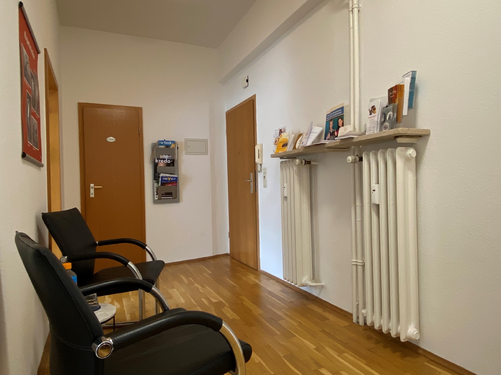 Die hier angebotene Bürofläche befindet sich im 2. Obergeschoss eines gepflegten Wohn- und Geschäftshauses aus dem Jahre 1951. Insgesamt  befinden sich zwei Wohneinheiten und drei Gewerbeeinheiten im Haus.